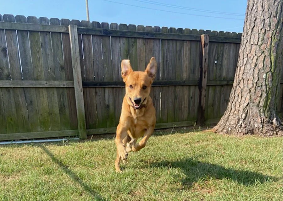 After a long day of work, Absurd gets time to play with the frisbee in his backyard.
