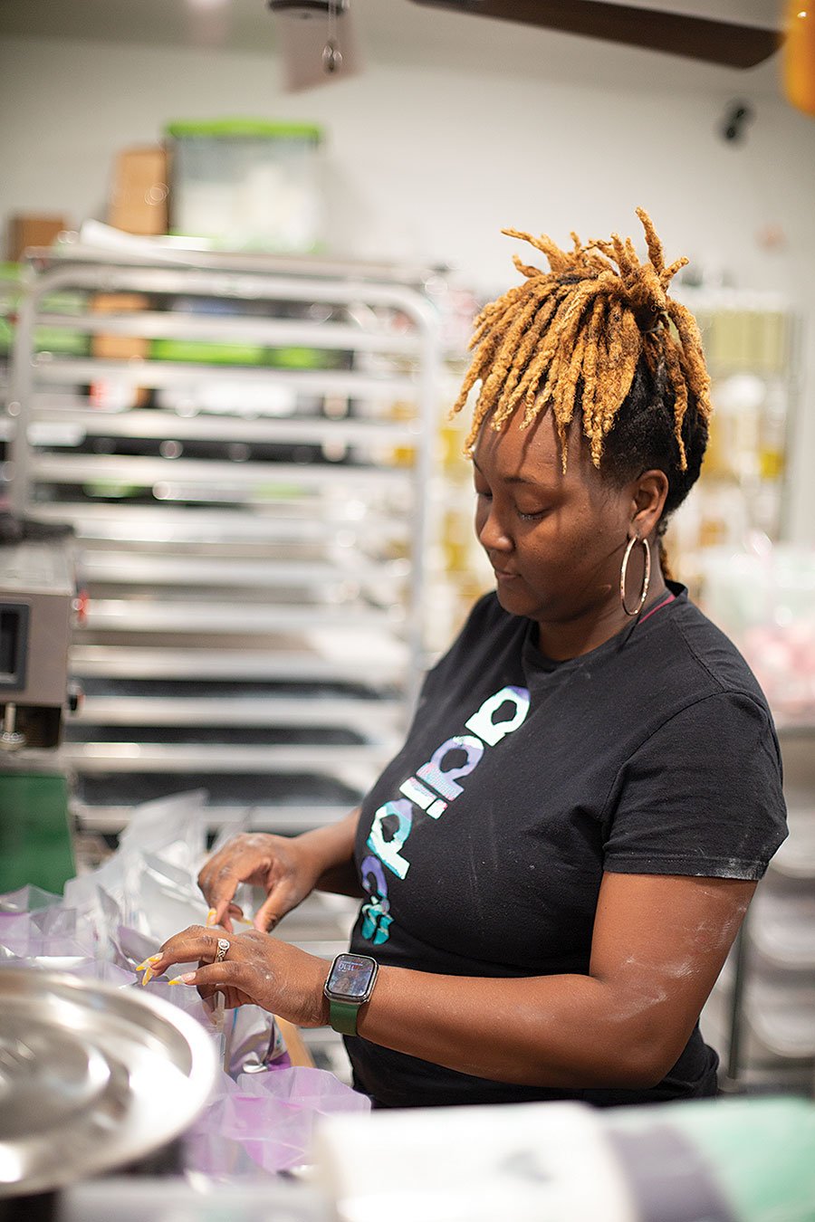 Ti’erra Lee, manager of Fizz Bizz’s Shower Department, gets orders filled to ship out.