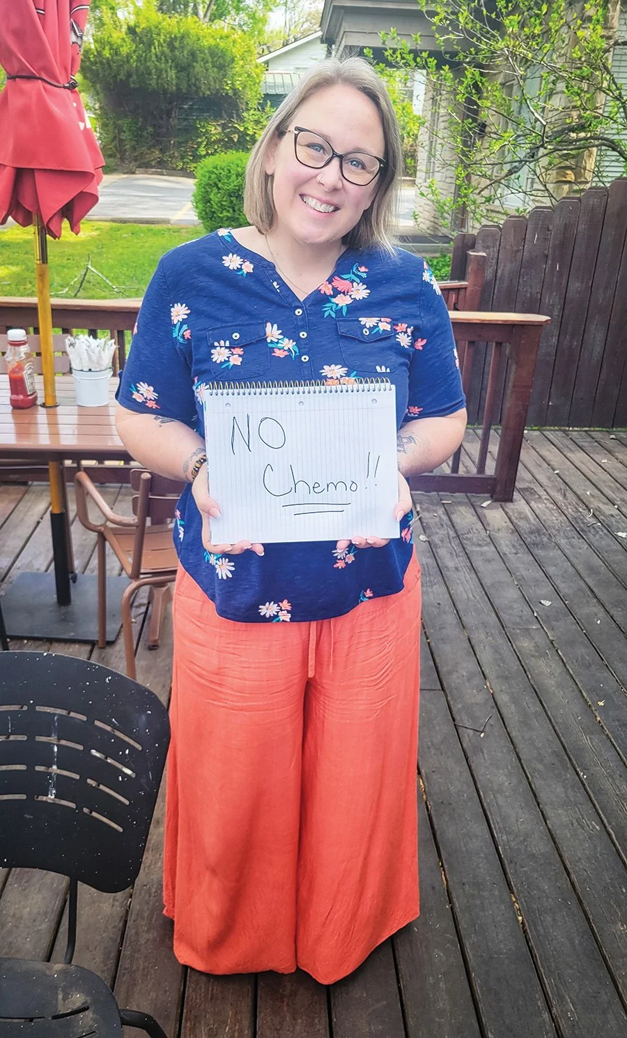 This photo was taken after Melissa’s post-op checkup, where her surgical oncologist at UAMS told her that no chemo was needed. She sent this to what she has dubbed her “booty buddies.” submitted photo.