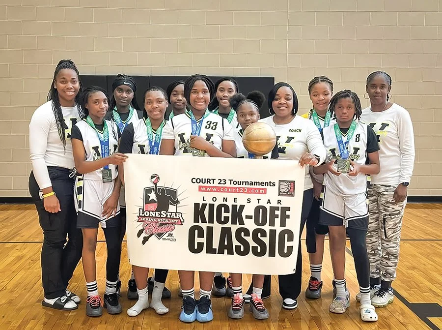 Coach Barry with the Lady Lions at the Lonestar Kick-Off Classic Tournament. submitted photo