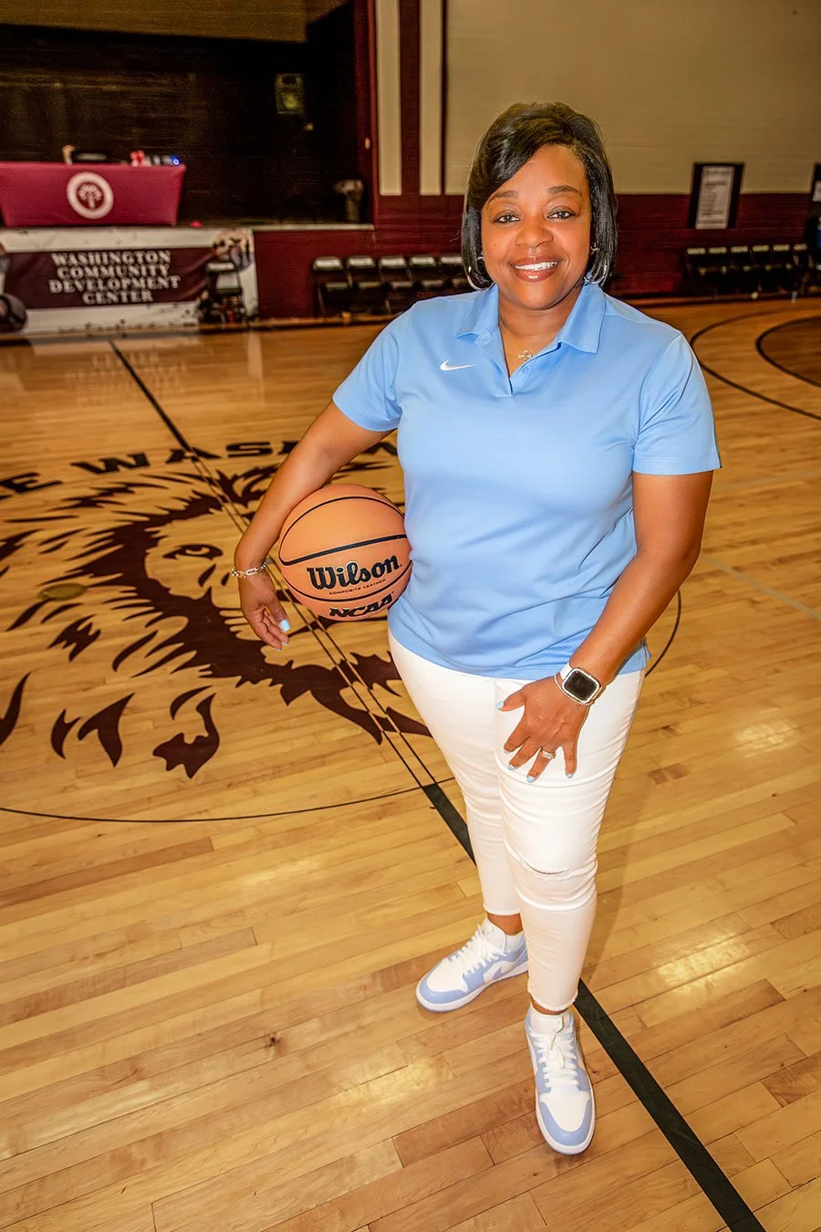 Before We Are Washington, Tia volunteered at the Boys & Girls Club, but when We Are Washington opened in 2021, Tia felt called back to a place she already knew well; Tia actually attended fifth and sixth grades at Washington Middle School. These days, she can be found on campus every afternoon from 4 to 8 p.m., coaching basketball to young ladies who are excited about all of the activities going on at We Are Washington, including their basketball league.