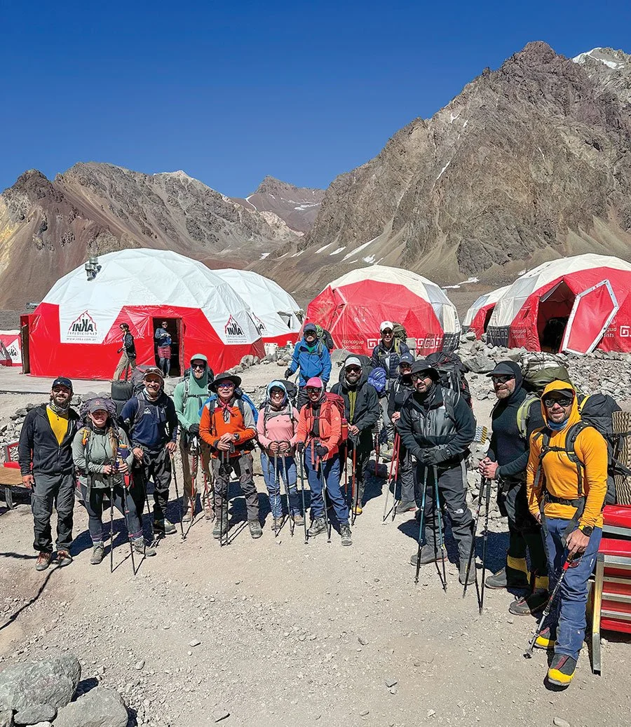Holly with her team at Base Camp, Plaza de Mulas, about to head up to the high camps for the summit. submitted photo