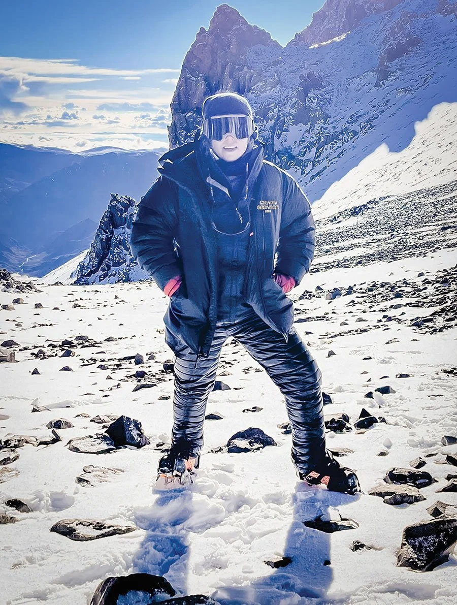 That self-daring mindset kept Holly going on Aconcagua, the tallest mountain in South America, in the Andes of Argentina, towering over the continent at nearly 23,000 feet. The gruelling cold winds bit through even her warmest gear, with temperatures averaging between 0 and 4 degrees Fahrenheit above the 5,000-meter mark. “I cannot express to you the pain I put myself through,” Holly said, recalling the frigid mountainside.