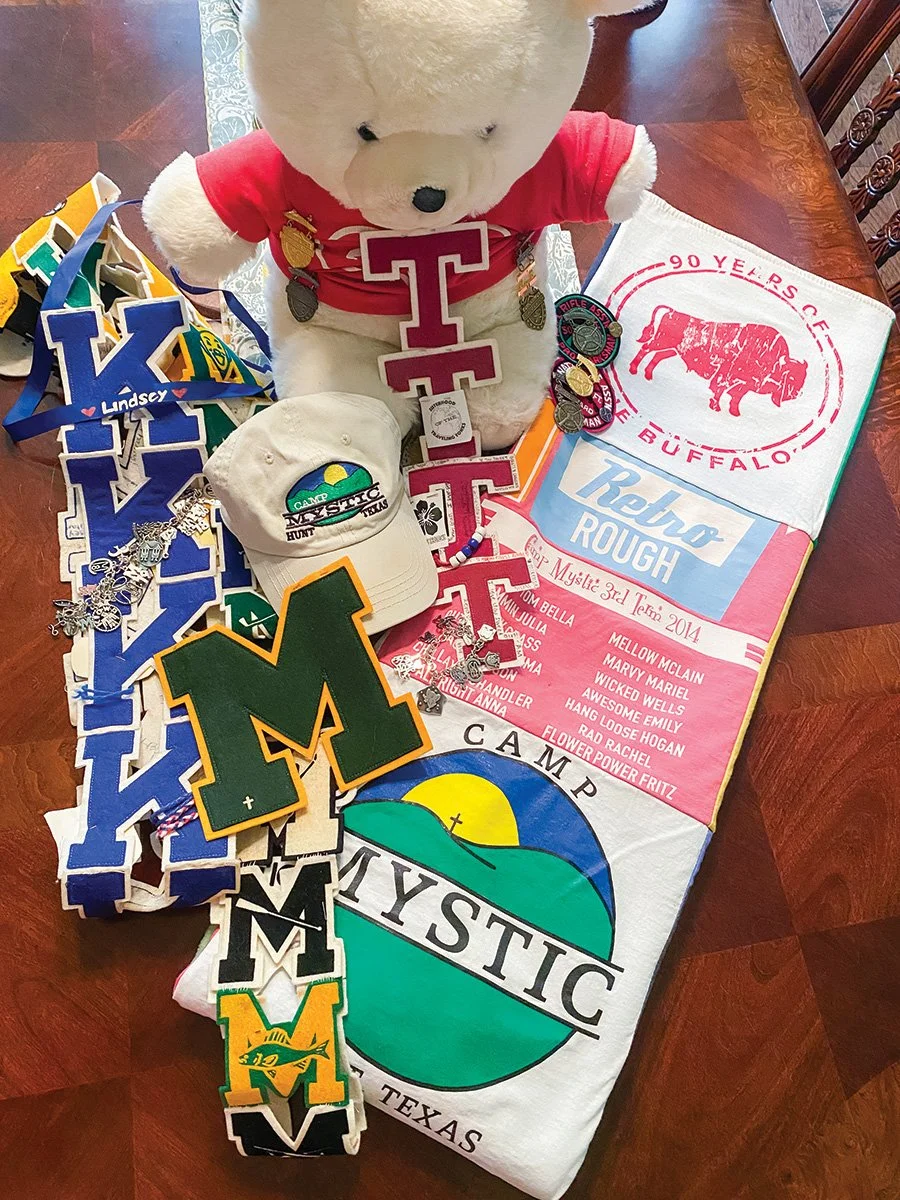 Lindsey and Emily McMillan’s shared camp mementos, including a teddy bear that was gifted to Emily by her aunt, who also attended Camp Mystic. submitted photos.