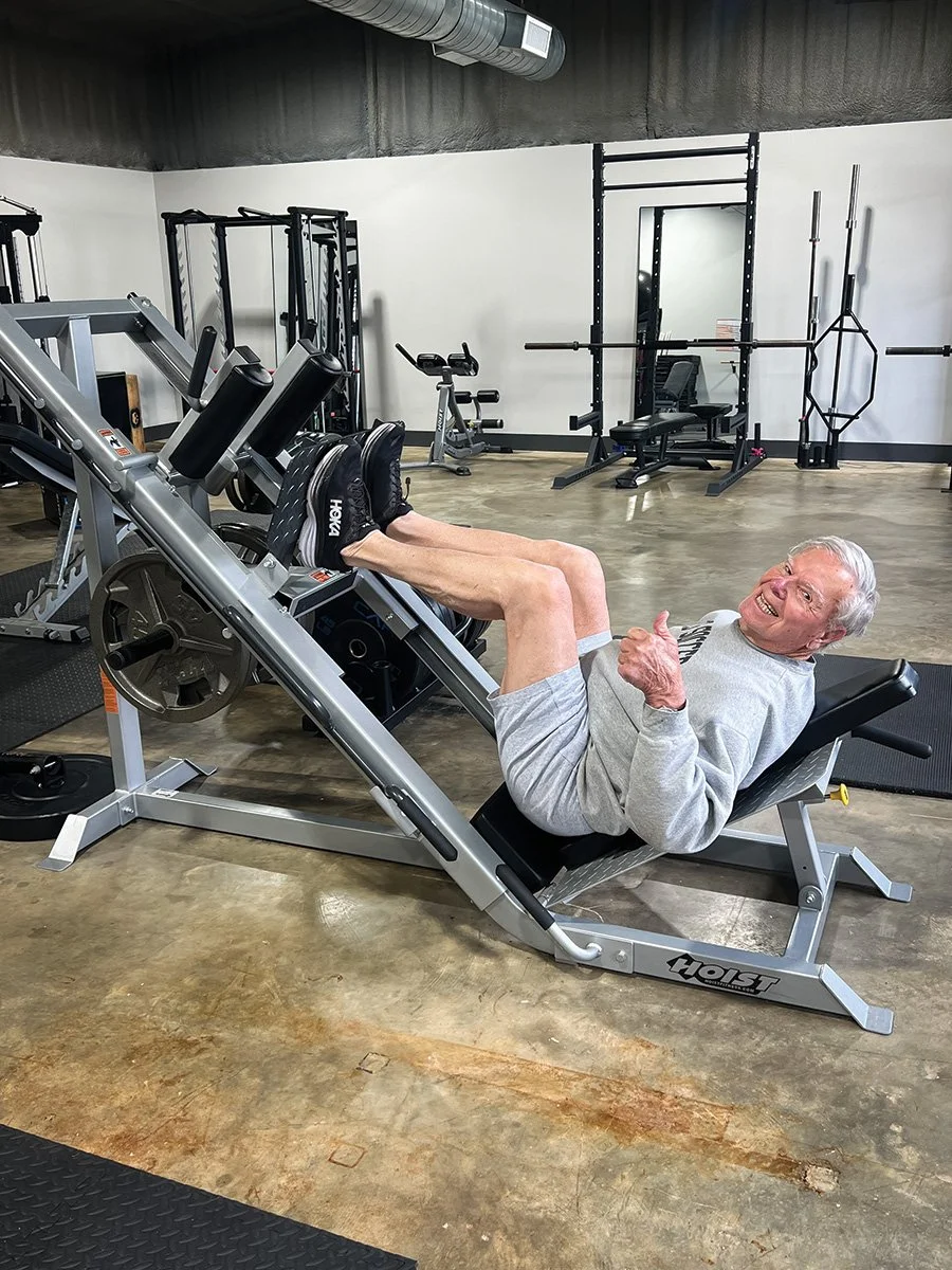 Mo Orr, one of Valerie’s clients, poses in the middle of his workout on his 89th birthday. submitted photo.