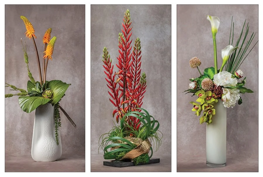 Kyle has an amazing eye for floral designs. His pieces are artfully composed to create tasteful accents for nightstands, bathroom counters, dining tables, and any other space you want to have a touch of elegance. photos courtesy of barrett bergmann home