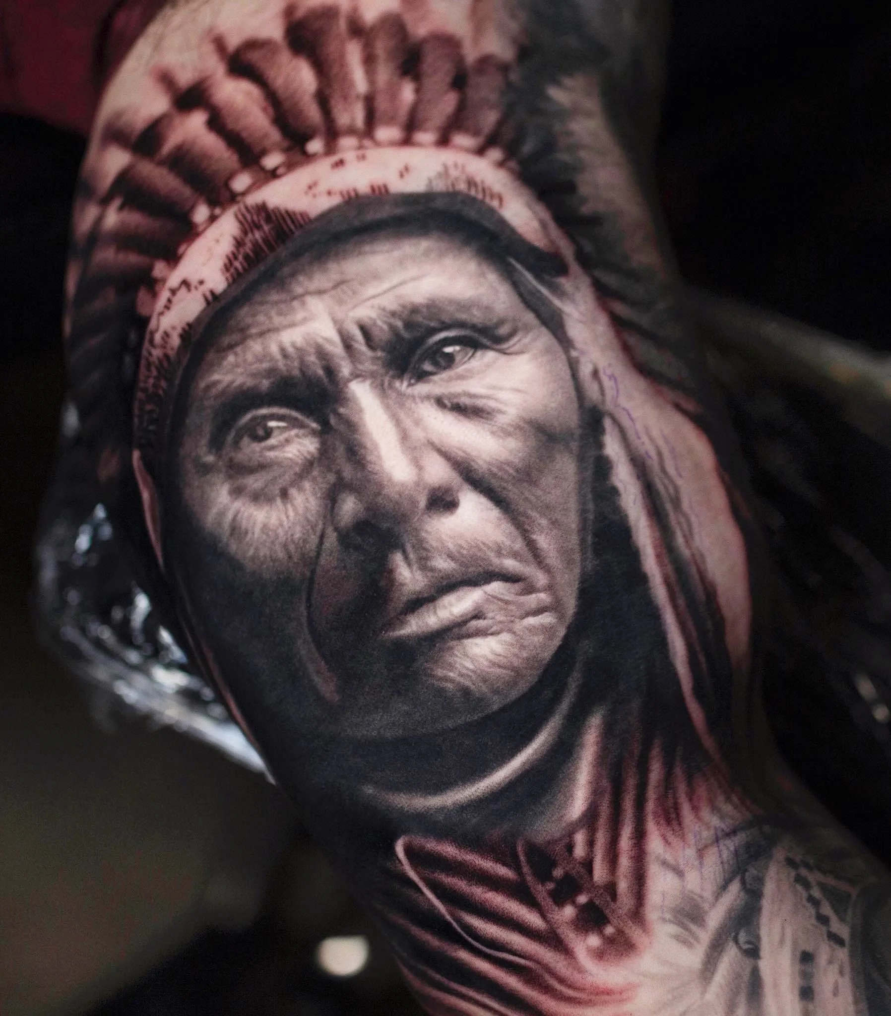 During two separate sessions and approximately 16 hours total, Quin created this Native American portrait for a soldier stationed in Cheyenne, Wyoming.
